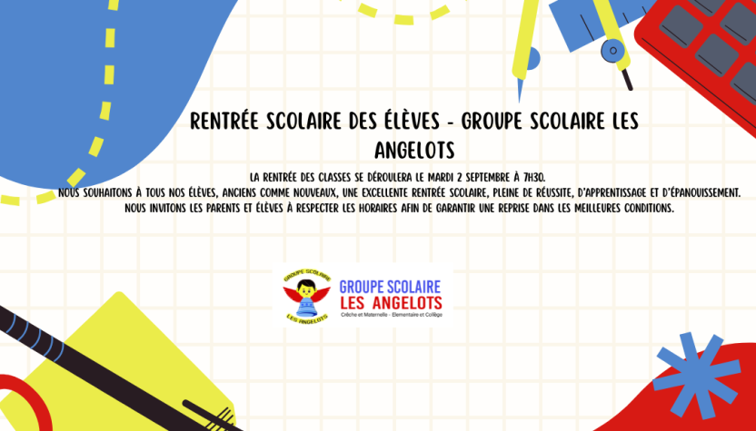 Nous souhaitons à tous nos élèves, anciens comme nouveaux, une excellente rentrée scolaire, pleine de réussite, d’apprentissage et d’épanouissement.